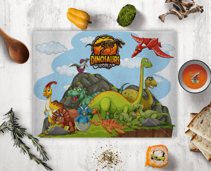 Dinosaur's world, Επιφάνεια κοπής γυάλινη (38x28cm)
