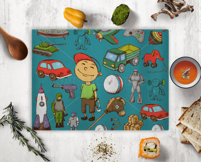 Toys Boy, Επιφάνεια κοπής γυάλινη (38x28cm)
