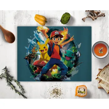 Ash Ketchum & Pikachu, Επιφάνεια κοπής γυάλινη (38x28cm)