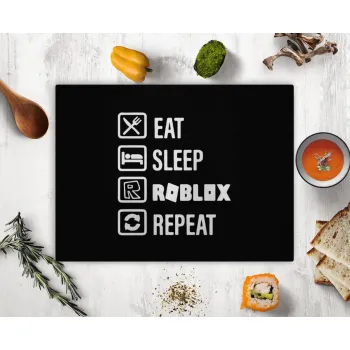 Eat, Sleep, Roblox, Repeat, Επιφάνεια κοπής γυάλινη (38x28cm)