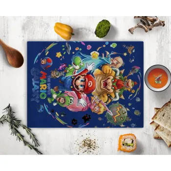 Glass cutting surface suitable for protecting the kitchen and dining room countertop. Great hygiene because it does not have pores like wooden surfaces, it cleans easily. It contains silicone droplets to not come into direct contact with the countertop surface.