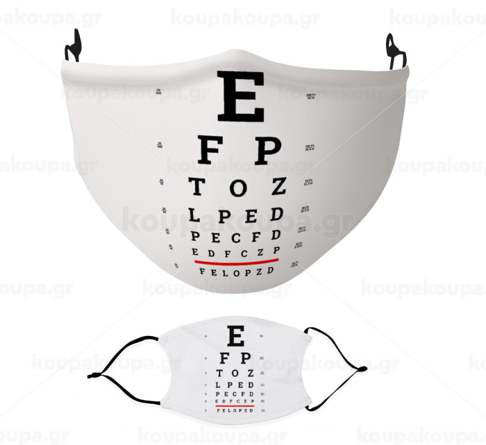 EYE test chart, Μάσκα υφασμάτινη Ενηλίκων πολλαπλών στρώσεων με υποδοχή φίλτρου