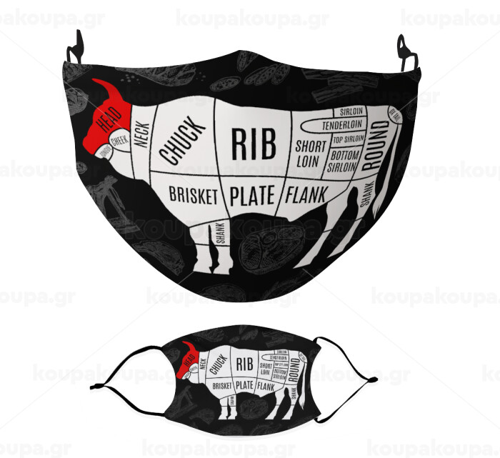 Diagrams for butcher shop, Μάσκα υφασμάτινη Ενηλίκων πολλαπλών στρώσεων με υποδοχή φίλτρου