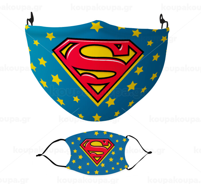 Superman Blue, Μάσκα υφασμάτινη Ενηλίκων πολλαπλών στρώσεων με υποδοχή φίλτρου