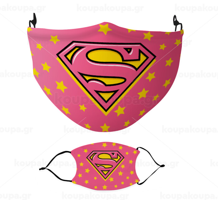 Superman Pink, Μάσκα υφασμάτινη Ενηλίκων πολλαπλών στρώσεων με υποδοχή φίλτρου
