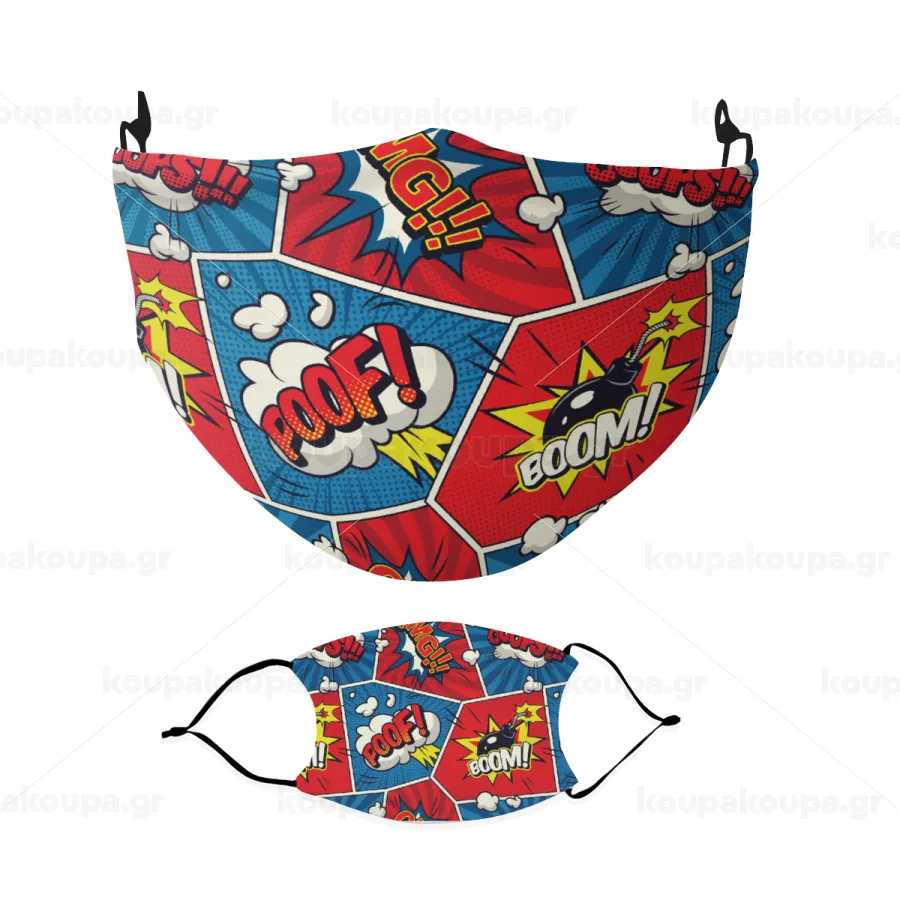 Comic boom!, Μάσκα υφασμάτινη Ενηλίκων πολλαπλών στρώσεων με υποδοχή φίλτρου