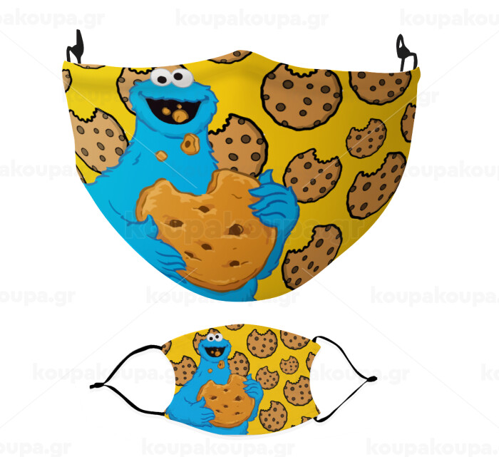 Cookie Monster, Μάσκα υφασμάτινη Ενηλίκων πολλαπλών στρώσεων με υποδοχή φίλτρου