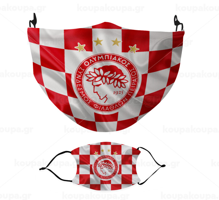 Olympiakos flag, Μάσκα υφασμάτινη Ενηλίκων πολλαπλών στρώσεων με υποδοχή φίλτρου