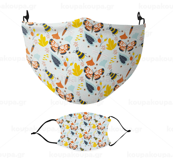 Πεταλούδες, Μάσκα υφασμάτινη Ενηλίκων πολλαπλών στρώσεων με υποδοχή φίλτρου