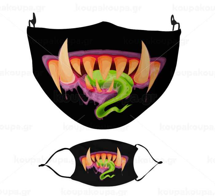 Halloween horror Jaws beast, Μάσκα υφασμάτινη Ενηλίκων πολλαπλών στρώσεων με υποδοχή φίλτρου