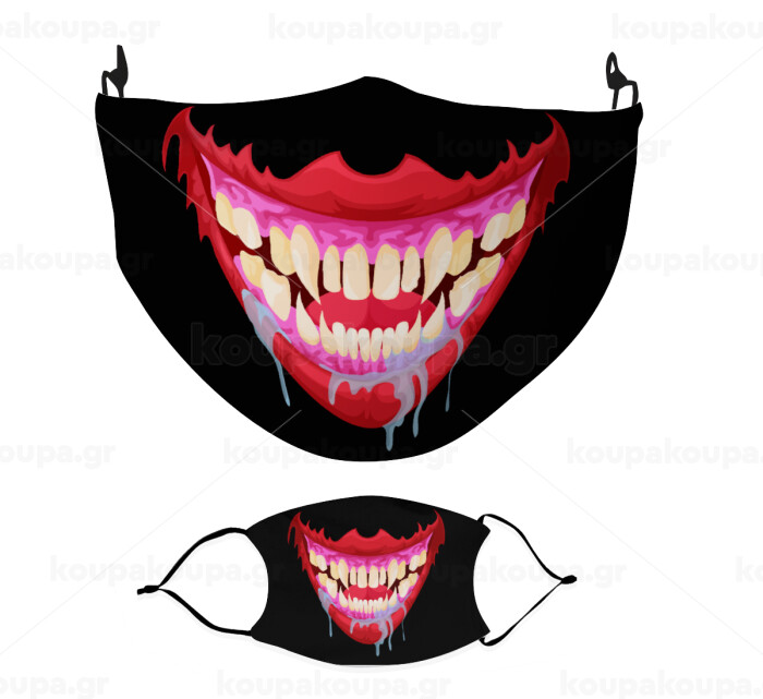 Halloween horror Jaws vampire, Μάσκα υφασμάτινη Ενηλίκων πολλαπλών στρώσεων με υποδοχή φίλτρου
