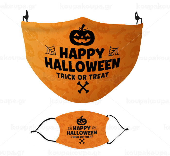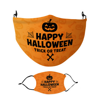 Happy Halloween pumpkin, Μάσκα υφασμάτινη Ενηλίκων πολλαπλών στρώσεων με υποδοχή φίλτρου