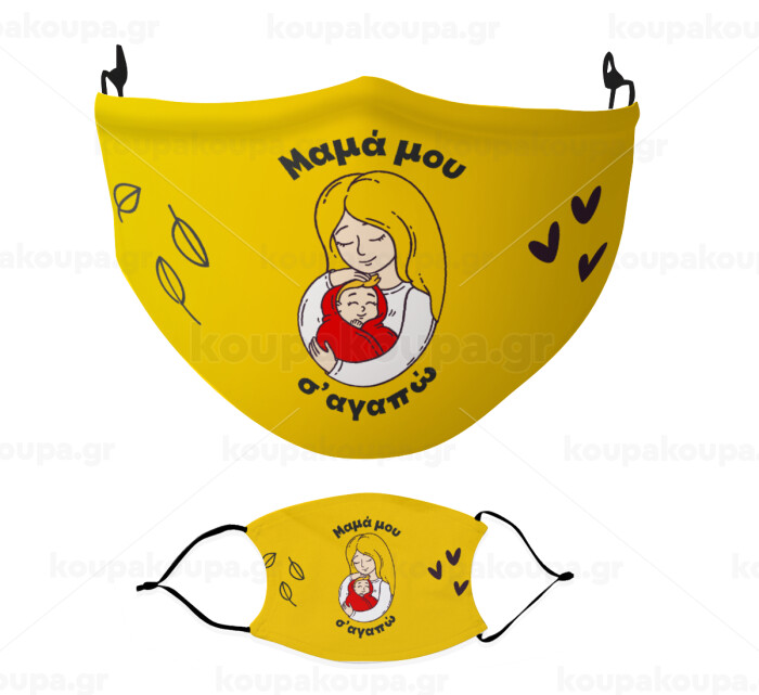 Μανούλα σ'αγαπώ αγκαλιά!, Μάσκα υφασμάτινη Ενηλίκων πολλαπλών στρώσεων με υποδοχή φίλτρου
