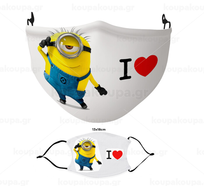 I love by minion, Μάσκα υφασμάτινη Ενηλίκων πολλαπλών στρώσεων με υποδοχή φίλτρου