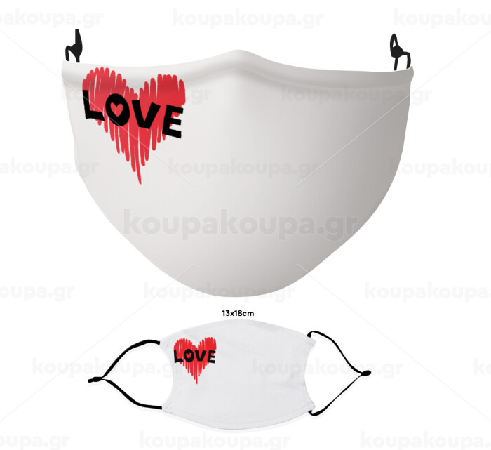 I Love You red heart, Μάσκα υφασμάτινη Ενηλίκων πολλαπλών στρώσεων με υποδοχή φίλτρου