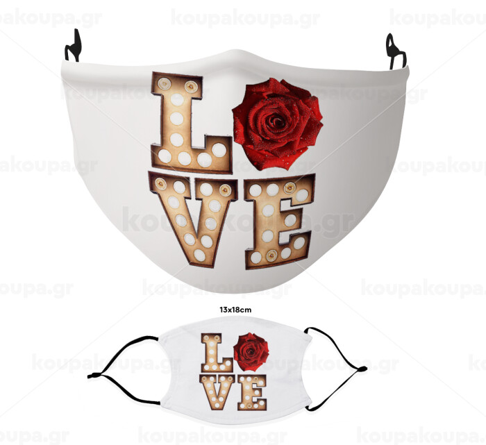 Love lights and roses, Μάσκα υφασμάτινη Ενηλίκων πολλαπλών στρώσεων με υποδοχή φίλτρου