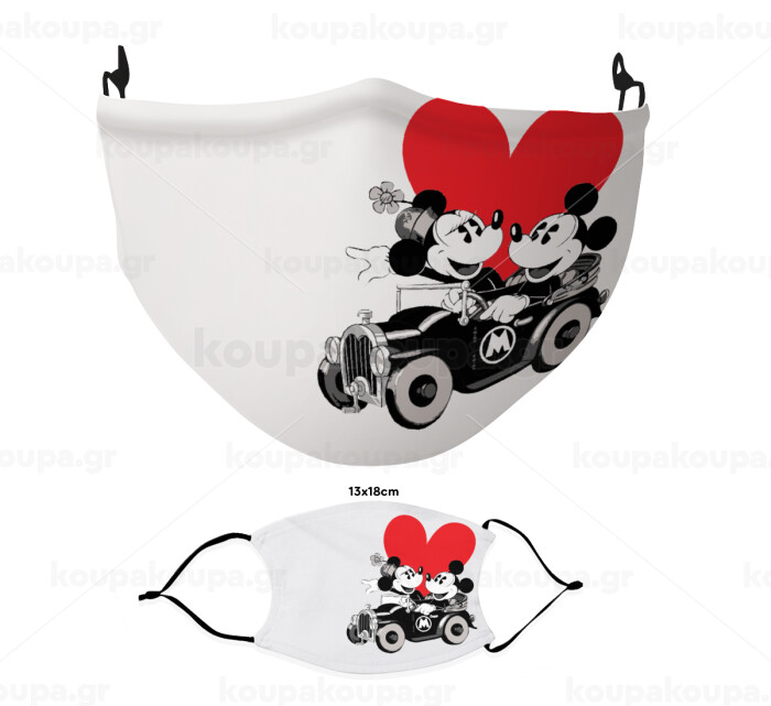 Mickey & Minnie love car, Μάσκα υφασμάτινη Ενηλίκων πολλαπλών στρώσεων με υποδοχή φίλτρου