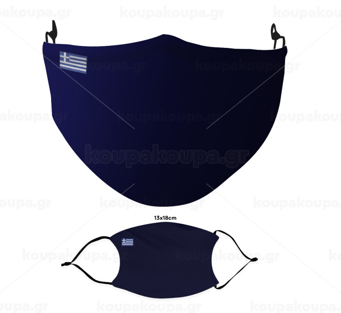 Ελληνική σημαία μικρή, Μάσκα υφασμάτινη Ενηλίκων πολλαπλών στρώσεων με υποδοχή φίλτρου