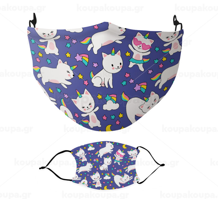 Cats unicorns, Μάσκα υφασμάτινη Ενηλίκων πολλαπλών στρώσεων με υποδοχή φίλτρου