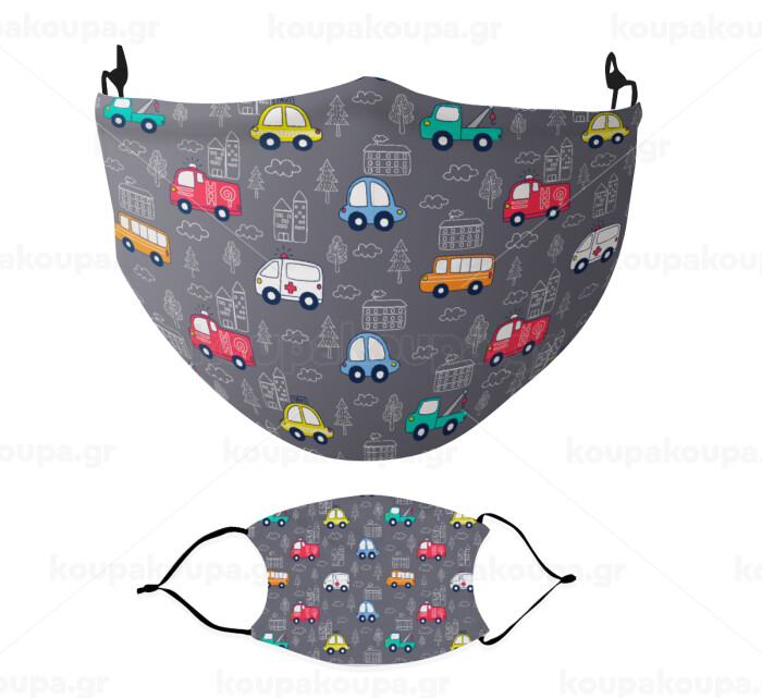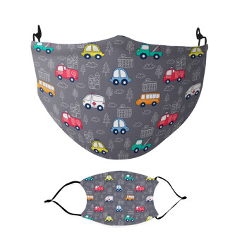 Hand drawn childish set with cars, Μάσκα υφασμάτινη Ενηλίκων πολλαπλών στρώσεων με υποδοχή φίλτρου