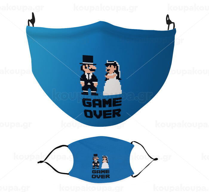 8bit Game Over Couple Wedding, Μάσκα υφασμάτινη Ενηλίκων πολλαπλών στρώσεων με υποδοχή φίλτρου