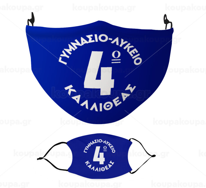 Έμβλημα Σχολικό μπλε κλασικό, Μάσκα υφασμάτινη Ενηλίκων πολλαπλών στρώσεων με υποδοχή φίλτρου