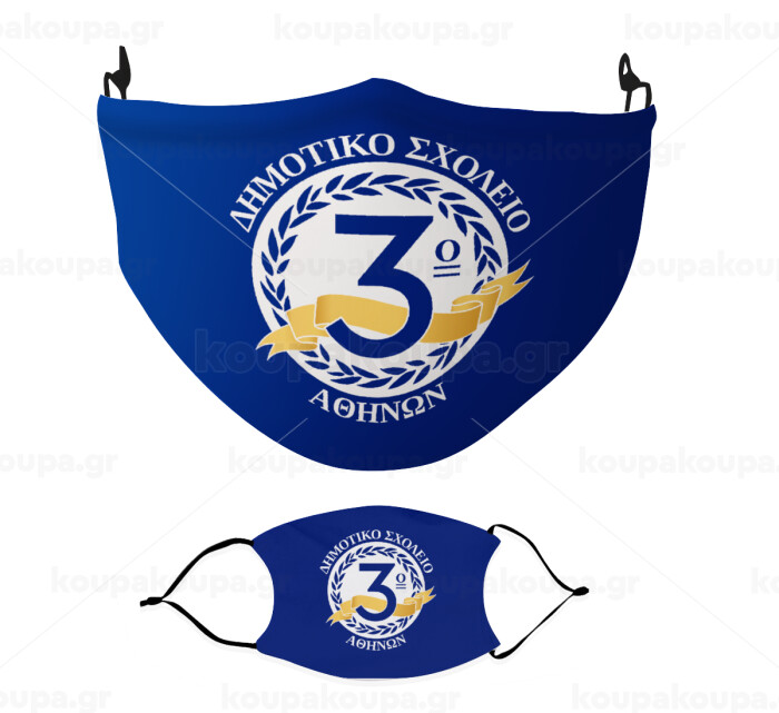 Έμβλημα Σχολικό μπλε, Μάσκα υφασμάτινη Ενηλίκων πολλαπλών στρώσεων με υποδοχή φίλτρου