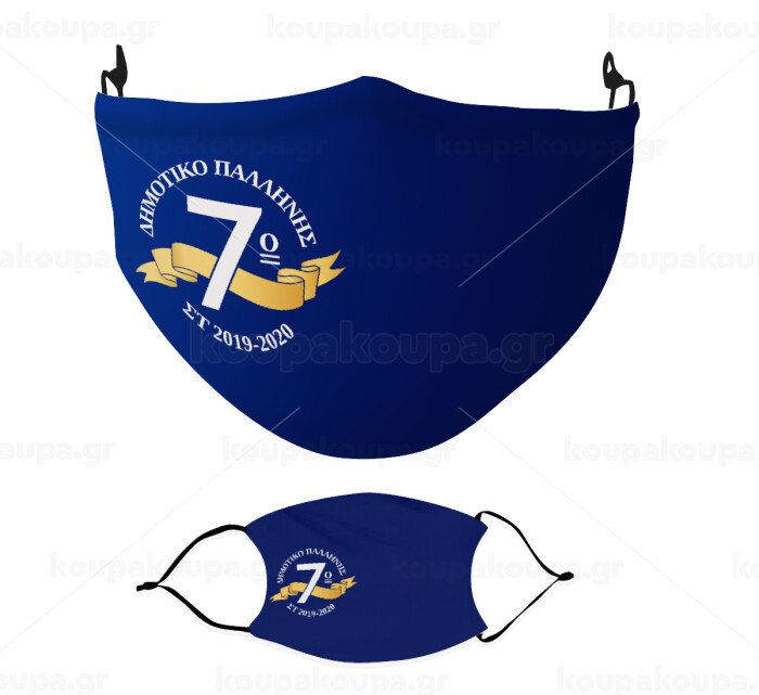 Σχολική μπλε με κορδέλα, Μάσκα υφασμάτινη Ενηλίκων πολλαπλών στρώσεων με υποδοχή φίλτρου
