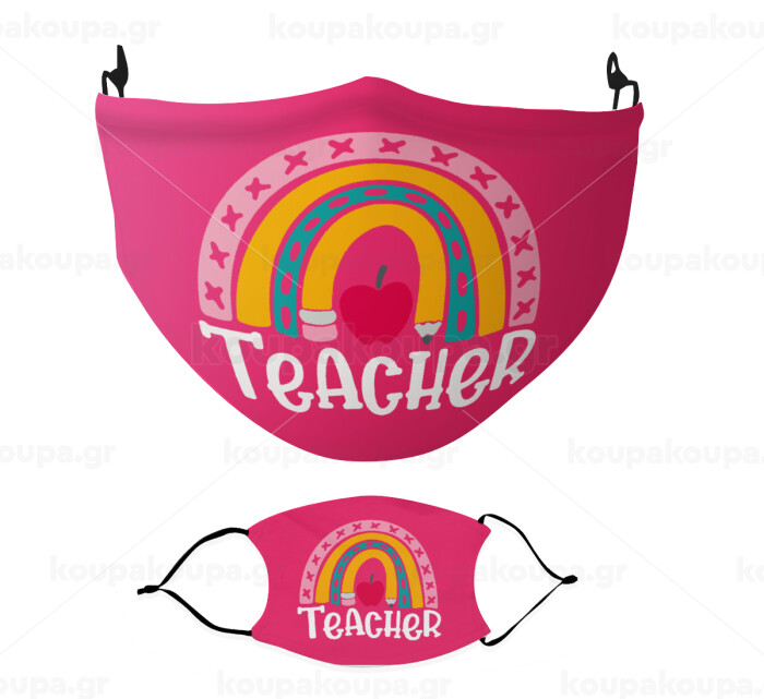 Rainbow teacher, Μάσκα υφασμάτινη Ενηλίκων πολλαπλών στρώσεων με υποδοχή φίλτρου