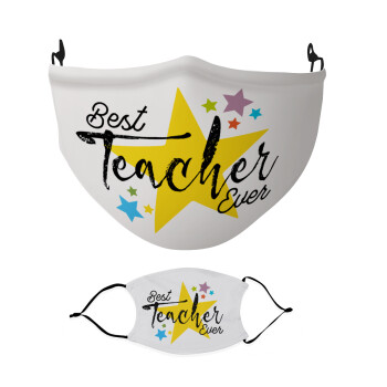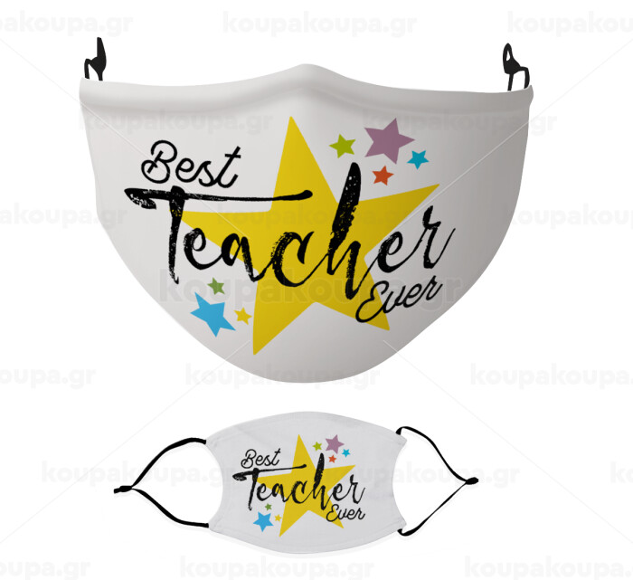 Teacher super star!!!, Μάσκα υφασμάτινη Ενηλίκων πολλαπλών στρώσεων με υποδοχή φίλτρου