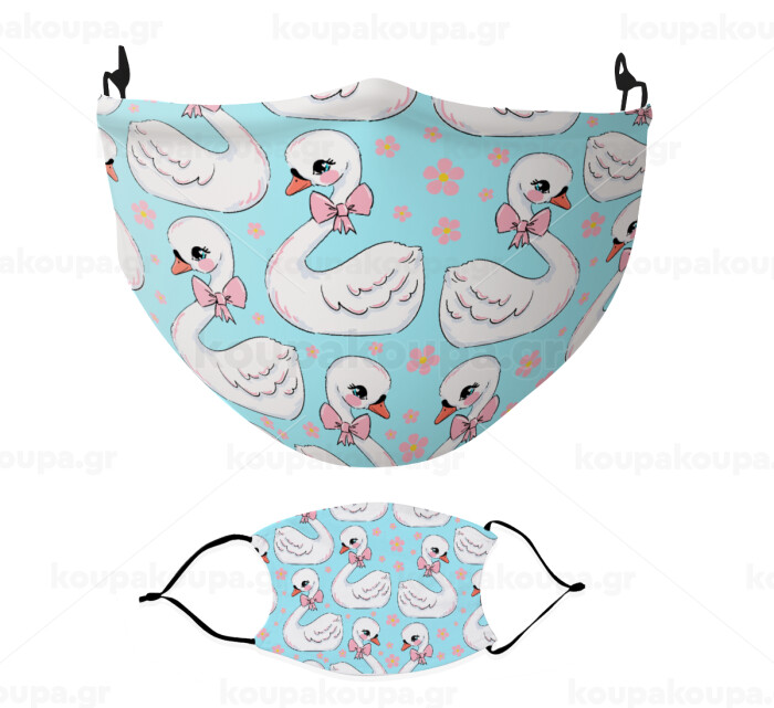 Λευκός κύκνος με παπιγιόν, Μάσκα υφασμάτινη Ενηλίκων πολλαπλών στρώσεων με υποδοχή φίλτρου