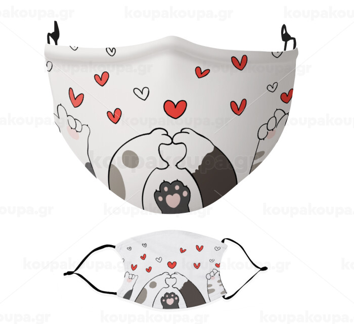 Cat paws, Μάσκα υφασμάτινη Ενηλίκων πολλαπλών στρώσεων με υποδοχή φίλτρου