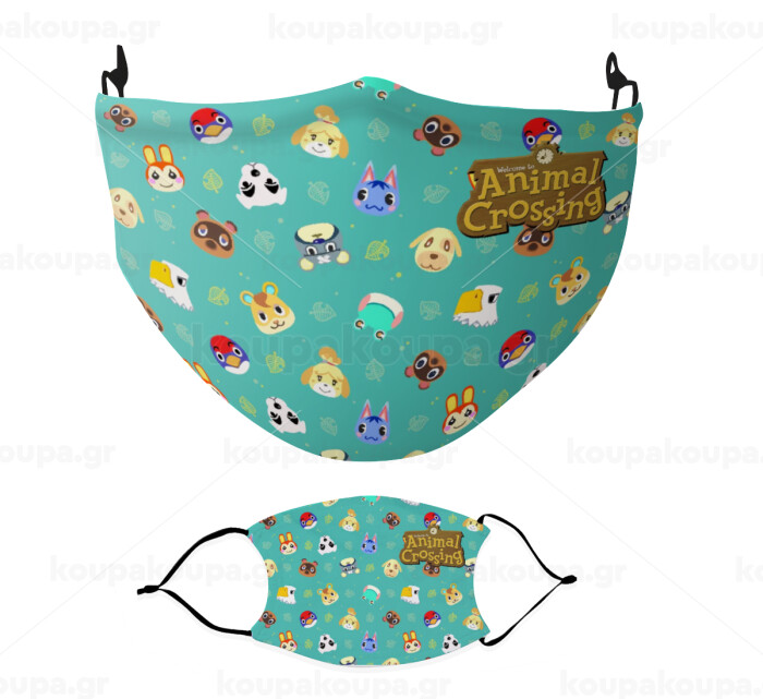 Animal Crossing, Μάσκα υφασμάτινη Ενηλίκων πολλαπλών στρώσεων με υποδοχή φίλτρου