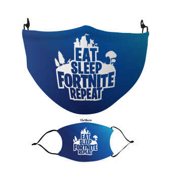 Eat Sleep Fortnite Repeat, Μάσκα υφασμάτινη Ενηλίκων πολλαπλών στρώσεων με υποδοχή φίλτρου