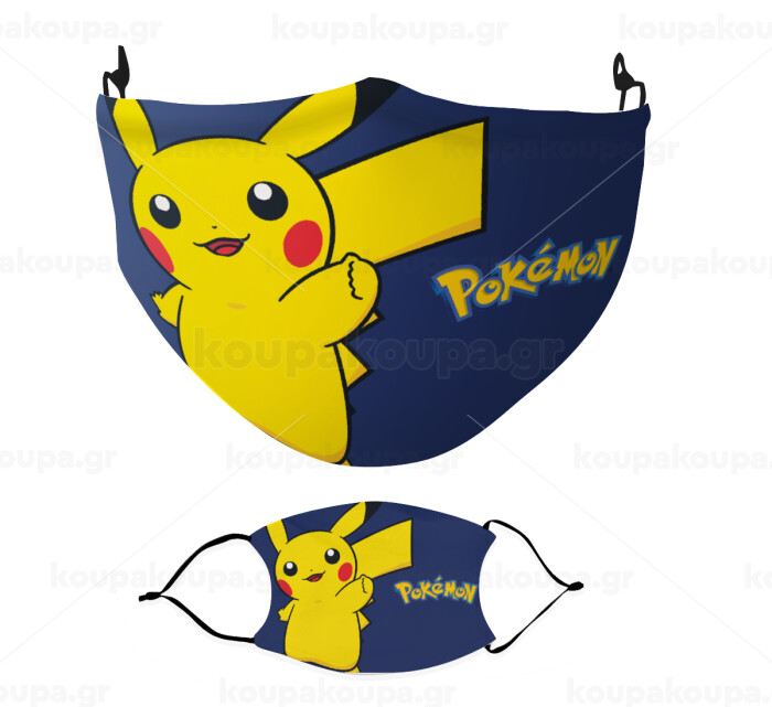 Pokemon pikachu, Μάσκα υφασμάτινη Ενηλίκων πολλαπλών στρώσεων με υποδοχή φίλτρου