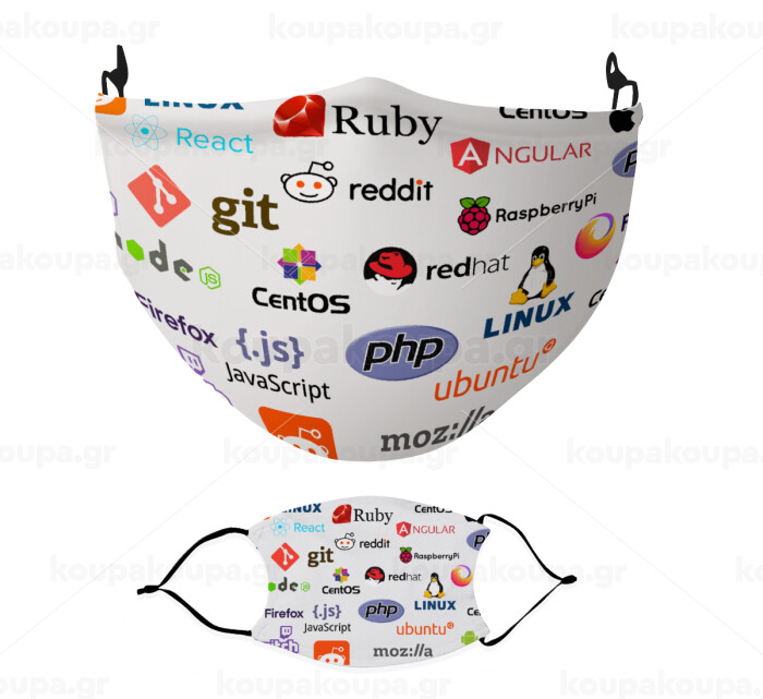 Tech logos, Μάσκα υφασμάτινη Ενηλίκων πολλαπλών στρώσεων με υποδοχή φίλτρου