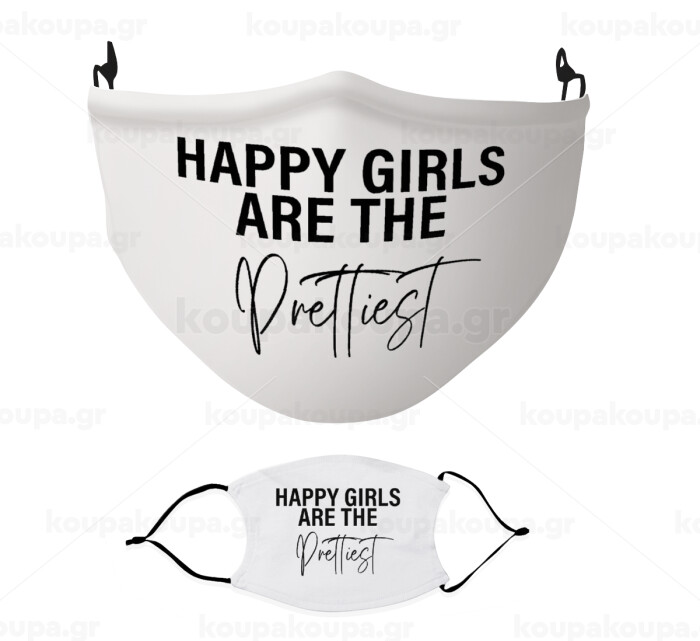 Happy girls are the prettiest, Μάσκα υφασμάτινη Ενηλίκων πολλαπλών στρώσεων με υποδοχή φίλτρου