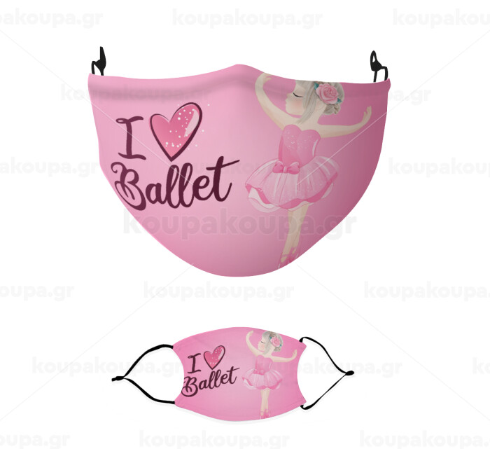 I Love Ballet, Μάσκα υφασμάτινη παιδική πολλαπλών στρώσεων με υποδοχή φίλτρου