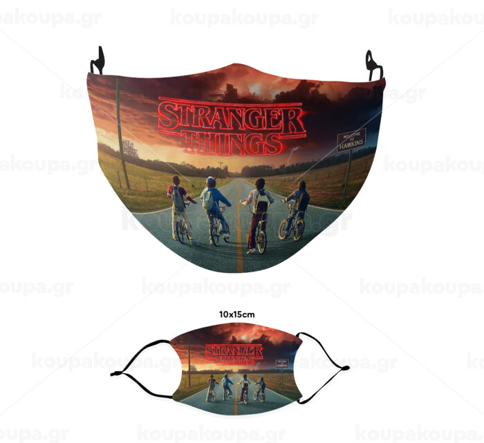 Stranger Things city, Μάσκα υφασμάτινη παιδική πολλαπλών στρώσεων με υποδοχή φίλτρου