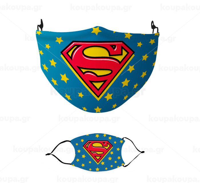 Superman Blue, Μάσκα υφασμάτινη παιδική πολλαπλών στρώσεων με υποδοχή φίλτρου