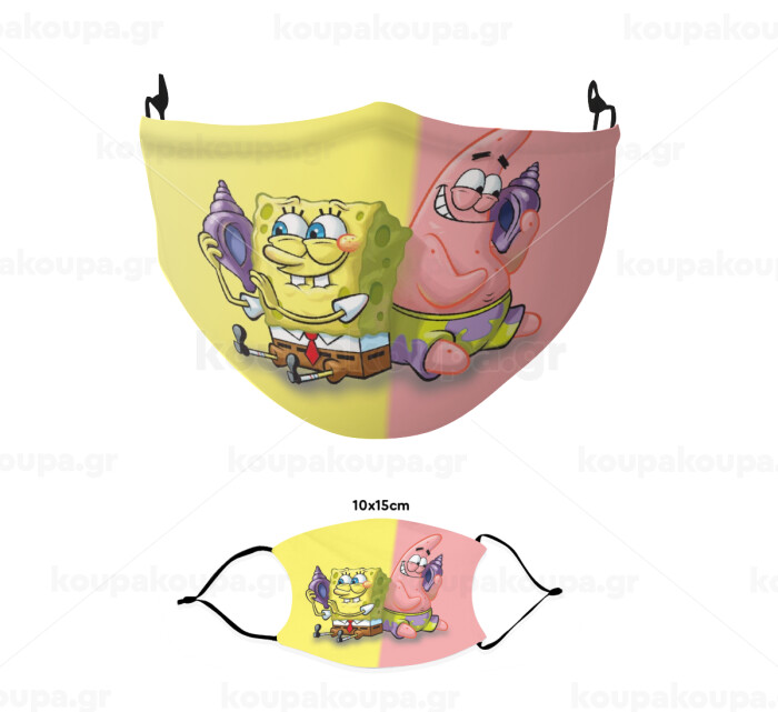 SpongeBob SquarePants & Patric, Μάσκα υφασμάτινη παιδική πολλαπλών στρώσεων με υποδοχή φίλτρου