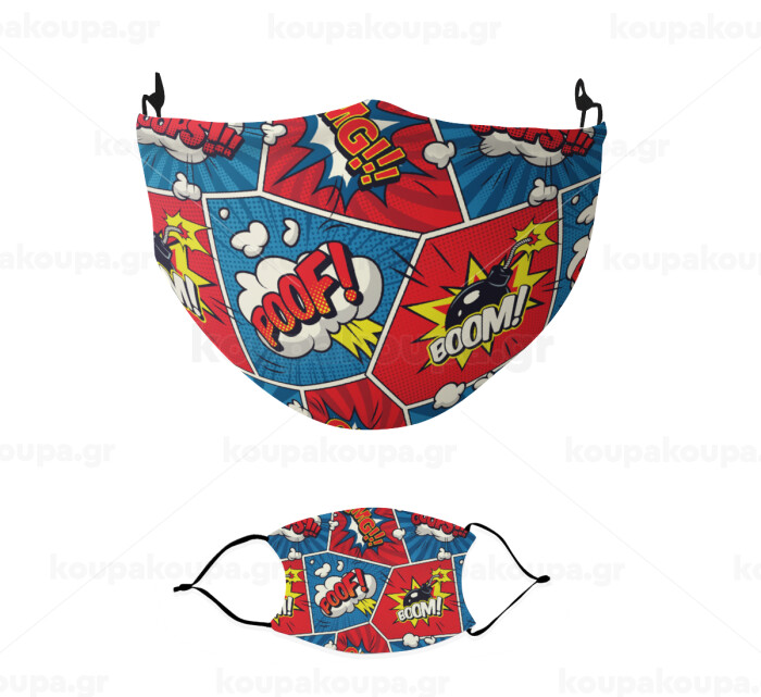 Comic boom!, Μάσκα υφασμάτινη παιδική πολλαπλών στρώσεων με υποδοχή φίλτρου