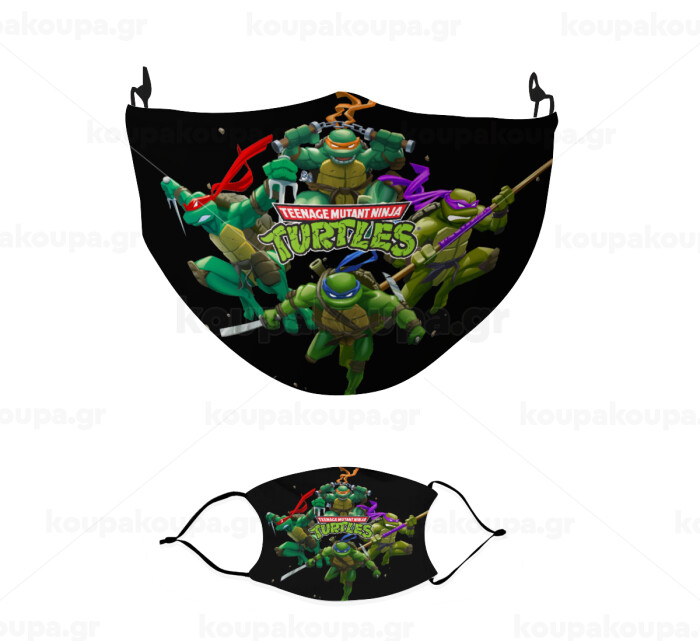 Ninja turtles, Μάσκα υφασμάτινη παιδική πολλαπλών στρώσεων με υποδοχή φίλτρου