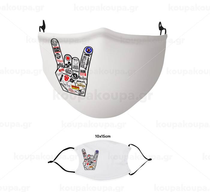 Best Rock Bands hand, Μάσκα υφασμάτινη παιδική πολλαπλών στρώσεων με υποδοχή φίλτρου