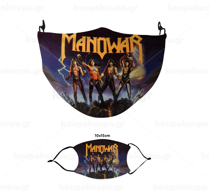 Manowar Fighting the world, Μάσκα υφασμάτινη παιδική πολλαπλών στρώσεων με υποδοχή φίλτρου