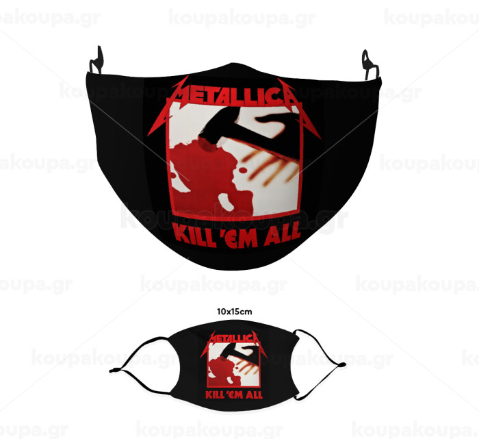 Metallica Kill' em all, Μάσκα υφασμάτινη παιδική πολλαπλών στρώσεων με υποδοχή φίλτρου