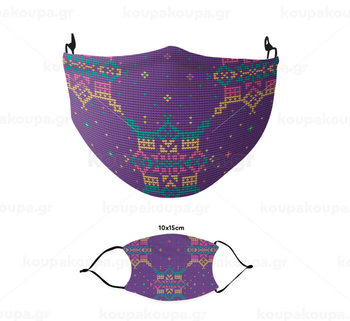Deer knitted purple, Μάσκα υφασμάτινη παιδική πολλαπλών στρώσεων με υποδοχή φίλτρου