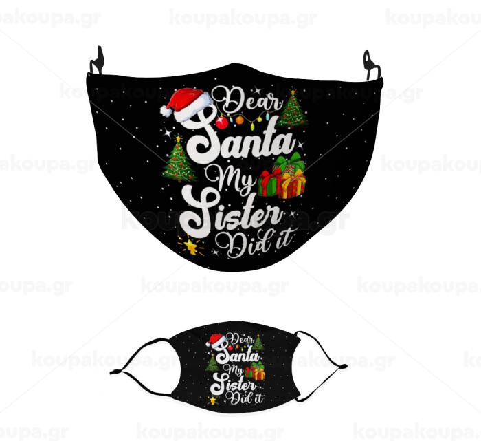Dear santa my Sister Did it, Μάσκα υφασμάτινη παιδική πολλαπλών στρώσεων με υποδοχή φίλτρου