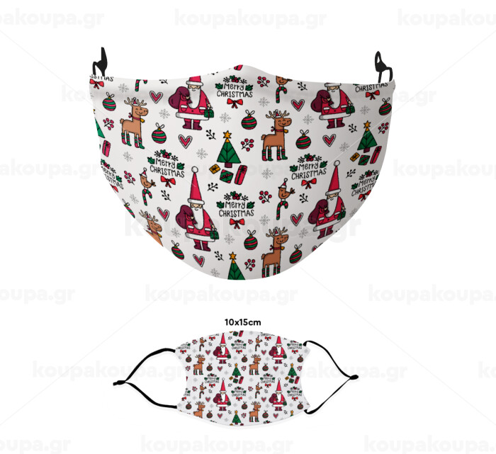 Santas, Deers & Trees, Μάσκα υφασμάτινη παιδική πολλαπλών στρώσεων με υποδοχή φίλτρου