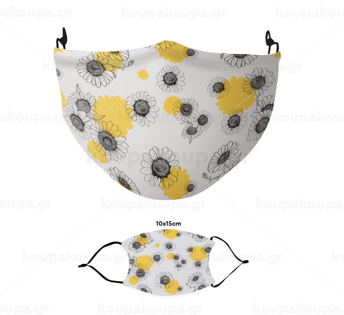 Flowers, Μάσκα υφασμάτινη παιδική πολλαπλών στρώσεων με υποδοχή φίλτρου